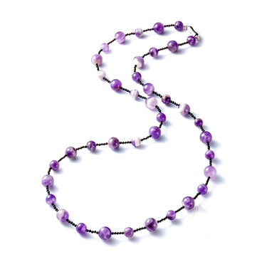 アメシストに水晶が溶け込み、美しいマーブル模様になったロックアメシストをシックなブラックオニキスで繋ぎ綺麗なネックレスに仕上げました。