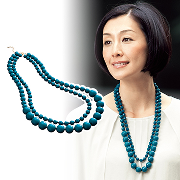 2連をそれぞれ1連のネックレスとしてもお使いいただける、使い勝手の良いロングネックレス。鮮やかなブルーグリーンがコーディネートの差し色としても大活躍!