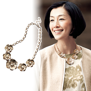 大きめのフラワーモチーフが大人かわいく、存在感たっぷりのショートネックレス。ゴールドの華やかさがデコルテをおしゃれに演出し、高級感とおしゃれ度をアップしてくれます。