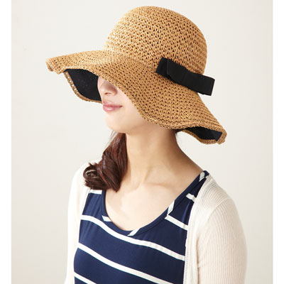 軽くて通気性の良いペーパー素材を使用した、麦わら風の可愛いつば広帽子!約11cmの長めのツバはワイヤーが入っているので、角度も日差しに合わせて自由自在!