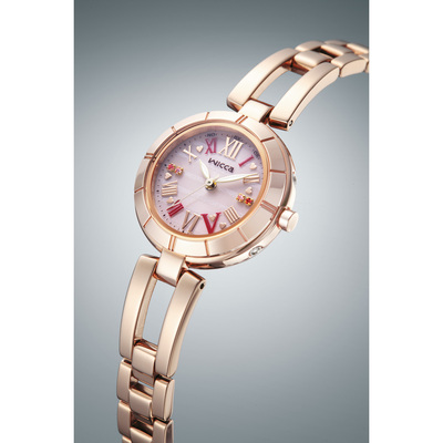 スワロフスキー・パール入りゅうず・カットガラス・貝文字板を採用し、華やかさとキュートさを兼ねそなえたモデル。