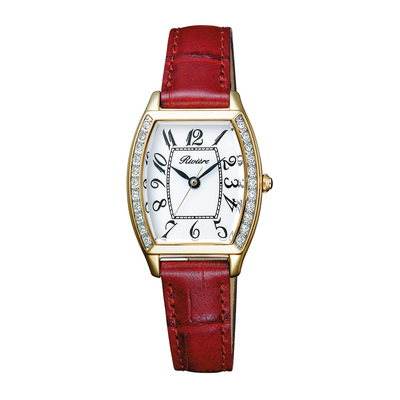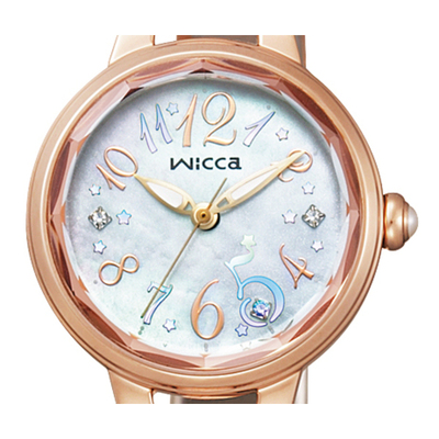 スワロフスキー・パール入りゅうず・カットガラス・貝文字板を採用し、華やかさとキュートさを兼ねそなえたモデル。