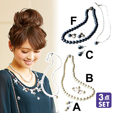 貝パール(人工真珠)ネックレス3点セット
