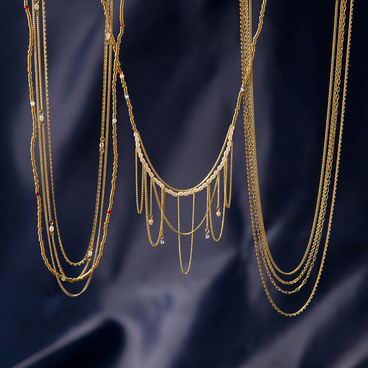 そのまますっぽりとかぶれる、人気トレンドの多連ネックレスです。シンプルなトップスにあわせても、柄トップスにあわせても、存在感をはなってくれます。