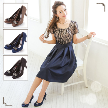 マリリンモンロー ビジューリボンのキレイ目パンプス
