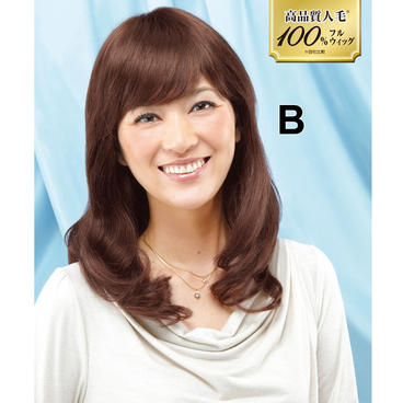 地肌部分が広いから前髪のアレンジが多様に楽しめる人毛100%フルウィッグ。前後にストッパーが付いたので着け心地、安定感がUP!