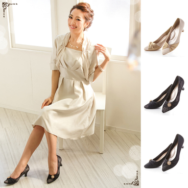 フラワービジューのキレイ目パンプス