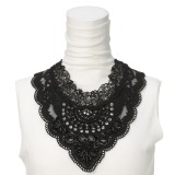 エレガントな総レースにさまざまな大きさや形のビーズをビーディング(ビーズ細工、飾り)した、フラワーデザインのネックレスです。