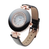 リエベクリスタルガラスセラミックベゼルラウンドフェイスウォッチ