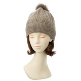 ティエドゥールフォックスポンポン付カシミヤニット帽子