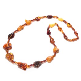 ヨーロピアン・アンバーマルチカラーアンバービッグストーンアクセントロングネックレス