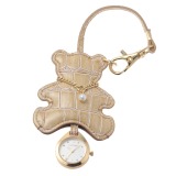 かわいらしいベアの形のケースに、小さな時計が収納されているチャームウォッチです。お手持ちのバッグなどのハンドルに付けて使用できます。