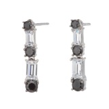 ジアモンドシルバーブラック&クリアーCZスウィングピアス/イヤリング