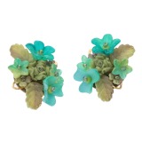 デザイン部にヴィンテージのムリーネ(棒状の色ガラスを重ねて模様を作り、溶かして伸ばした後に切断して加工したもののこと)のパーツをあしらったネックレスと、スウィングデザインのイヤリング/ピアスのセットで…