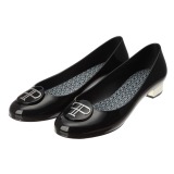 フォーパパリブランドチャーム付メタリック調ヒールレインパンプス