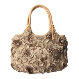 フラワーモティーフをあしらった、トートバッグです。■外側:本物と見間違えてしまいそうな精巧な花びら細工を、全面にランダムにちりばめてあしらいました。
