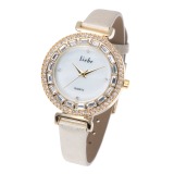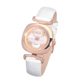 リエベチェコガラスクローバーデザインクッションフェイスレザーベルトウォッチ