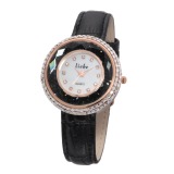 リエベクリスタルガラスムービングストーンラウンドフェイスベルトウォッチ