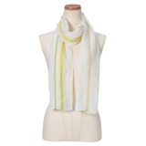 麻素材とコットンキュプラの異素材を使い、カラーブロック風にデザインした、やさしい色合いが特徴のストールです。
