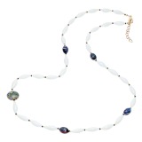 クリス・セリーン淡水パール&ガラス&CZタッセルロングネックレス