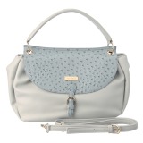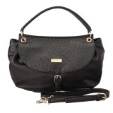 異素材を組み合わせて使用した、2ウェイショルダーバッグです。■本体:メイン素材はスムースタイプの合成皮革、マグネット付きかぶせ部分はオーストリッチ調の合成皮革を切り替えて使用。