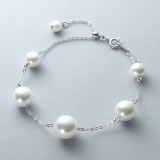プレミアムパールホワイト貝パールステーションブレスレット