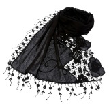 綿100%の生地を使用し、レース刺しゅうをアクセントにあしらったストールです。ヨーロッパで人気のデザインを、当ブランドがオリジナルで作り上げた上品な仕上がりです。