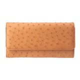 オーストリッチ革を使用した、スナップ付きかぶせデザインの横長ウォレットです。■外側:高級皮革のオーストリッチ革を使用し、当ブランド定番で人気のスナップ付きかぶせ仕様にしました。