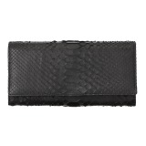 パイソン革を贅沢に使用した横長ウォレットです。内側は外側と同系色の合成皮革を用いました。小銭入れやお札入れ、カード入れも充実しているので整理収納しやすくて便利です。
