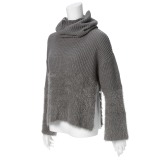 ミューリエ共布スヌード付異素材使い長袖プルオーバー