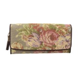 絵画のように繊細な濃淡のブーケが描き出された、ゴブラン織を用いてお作りした横長ウォレットのご紹介です。