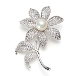 プレミアムパール貝パール&CZフラワー&リーフデザインブローチ
