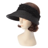 麦ブレードを使用した、きれいサンバイザーです。■本体:ベースに麦(=天然草)ブレードを使用し、立体的なテープ状のレースをランダムに縫い付けました。
