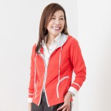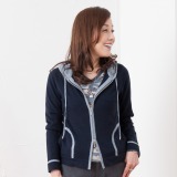 フードの内側やポケット部分などに、ラメ糸でアクセントをきかせたジップパーカーです。コンパクトなシルエットが若々しくおしゃれな印象。