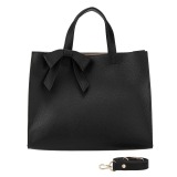 リボンがデザインのアクセントになった、かわいらしい角型バッグです。角型なので荷物をたっぷり入れることができ、整理整頓もしやすいデザインです。