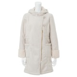 もこもことした裏地で肌触りが気持ちよく暖かな着心地のフェイクムートンコートです。かわいらしさと格好良さを兼ね備えたデザイン。