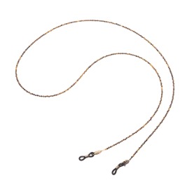 ■本体:ファセットカットをほどこしたジェムストーンをふんだんに使用し、落ち着きのあるシックなダークカラーが魅力のおしゃれなグラスホルダーに仕上げました。シリコン製のホルダーパーツは、中央の金具をずらすことで、眼鏡を引っ掛ける部分を広げることができるため、眼鏡のモダン部分(耳に当たる部分)が多少大きくてもお使いいただけます。また、ホルダーパーツを外してシンプルなロングネックレスとしてお着けいただいても素敵。ゆったりとした長さがあるので、頭から被って気軽に着用が可能です。当商品に使用しているジェム…