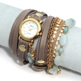 ラ・メールコレクションズジェムチャーム付レザーラップベルトウォッチ