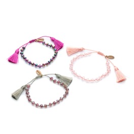 ザカシャガラスビーズミックスカラータッセルブレスレット3本セット