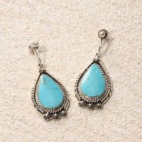 ネイティブ アメリカン キングマン産ターコイズ ドロップシェイプ スウィングイヤリング<ナバホ族作>