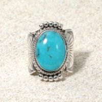 良質なターコイズが産出されることで知られるアリゾナ州・キングマン産ターコイズを使用し、ナバホ族が“父”と崇める空をイメージして作り上げたリングです。