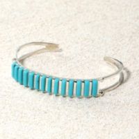 ネイティブ アメリカンターコイズカラーストーンラインデザインインレイバングル<ズニ族作>