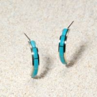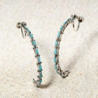 ネイティブ アメリカンスリーピングビューティー産ターコイズニードルポイントフープピアス<ズニ族作>