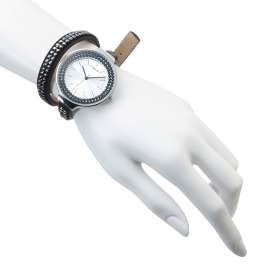 <ブラック>スパークスワロフスキークリスタルラウンドフェイスラップベルトスパークリングウォッチ“セン
