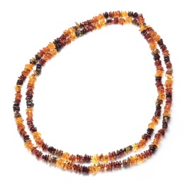 ヨーロピアン・アンバーマルチカラーアンバーフラットビーズロングネックレス