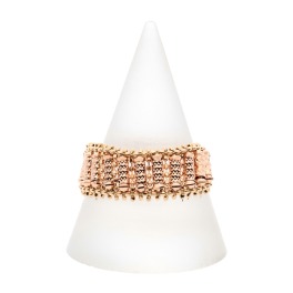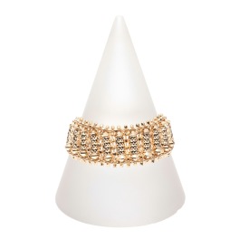 ダイヤモンドカットをほどこした18Kのディスク型パーツをふんだんに使用し、縦横交互に配置したスライドチェーンリング。