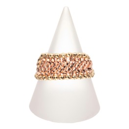 18Kツーカラーゴールドでお作りしたボリュームスライドチェーンリング。ダイヤモンドカットをほどこしたパーツを使用した、豪華な輝きを放つチェーンリングをテーマに作製した一品です。