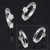 18Kを使用し、デザイン部に計0.2カラットUPのダイヤモンドとアームにダイヤモンドカットをほどこしたミラーボールをあしらった、サイズ調整可能なフレキシブルリングです。