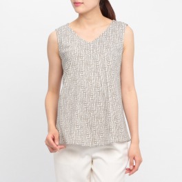 ボン・サンスハイテンション幾何学プリントノースリーブプルオーバー