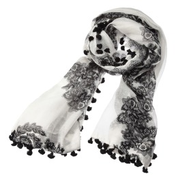 シトラスレースプリントポンポン付大判ストール